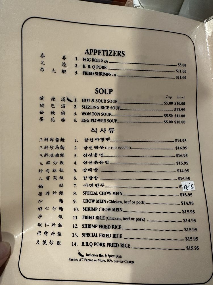 Chicken, pork, beef and shrimp sauteed in garlic sauce. Hot and spicy.
